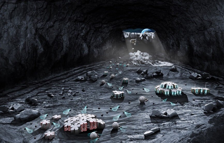 Figure 1: Conceptual diagram of future base camp by multiple robots in Lunar underground cave