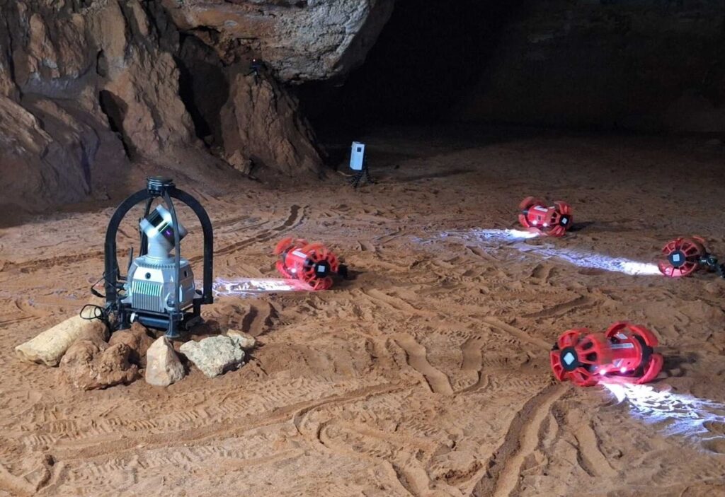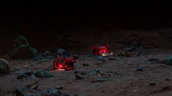 Cooperative exploration campaign by multiple small robots made in an underground cave in Australia